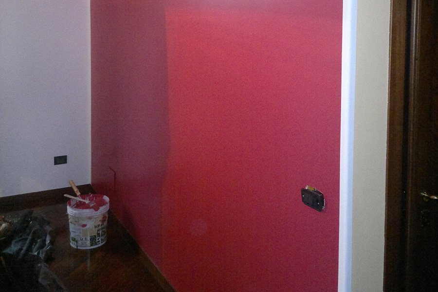 • In seguito le pareti verranno igienizzate e , dopo la completa asciugatura verrà applicata una mano di fissativo consolidante (o primer) che per l’appunto serve a ottimizzare il fissaggio del colore che daremo alle superfici.